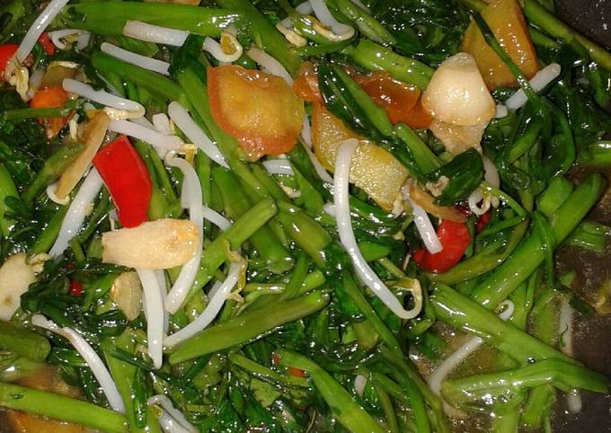 Kangkung segar yang digunakan dalam resep ini memberikan rasa segar dan renyah pada masakan.