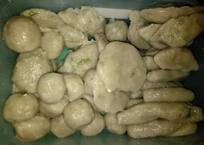 Untuk membuat Pempek Ikan Salem, pertama-tama kita perlu membuat adonan pempek terlebih dahulu. Adonan pempek terdiri dari ikan tenggiri yang dihaluskan, tepung sagu, telur, bawang putih, air es, garam, dan merica.